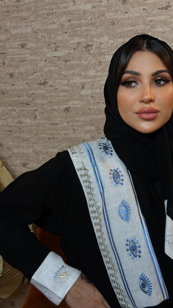 القماش : كريب كوري مصنع من خيوط يابانية و عملي ومريح وبارد على الجسم لأنه يسمح بمرور الهواء من مسامات القماش، سواده داكن لا يبهت بكثرة الاستعمال.مميزات القماش:يتميز القماش الكريب الكوري بأنه بدون لمعة، عملي ومريح.